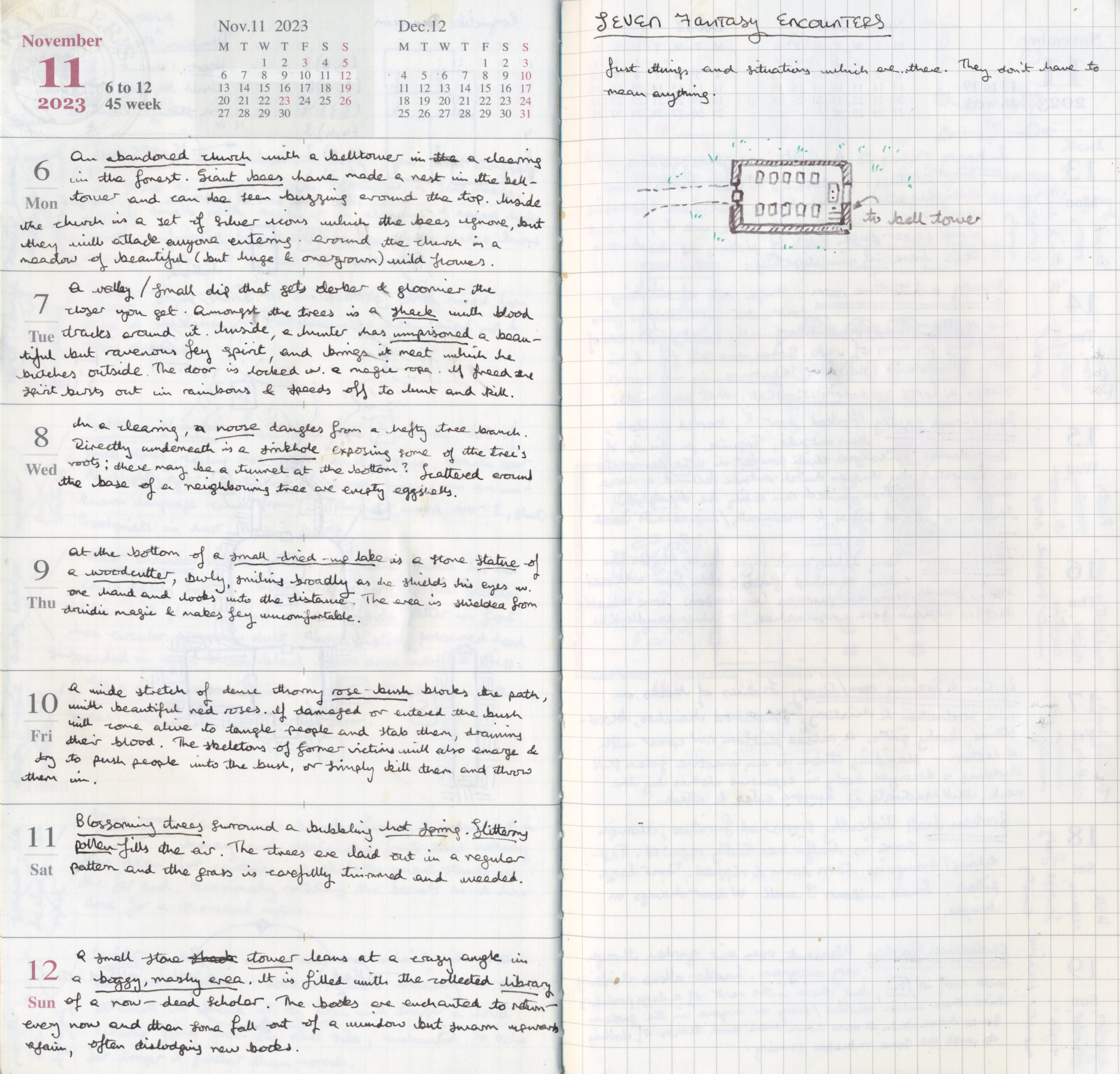 Not in any sense a dungeon, but I did absolutely use Monday's bee church and Friday's deadly rosebush in actual play, which makes this the only week that has been in a real game.