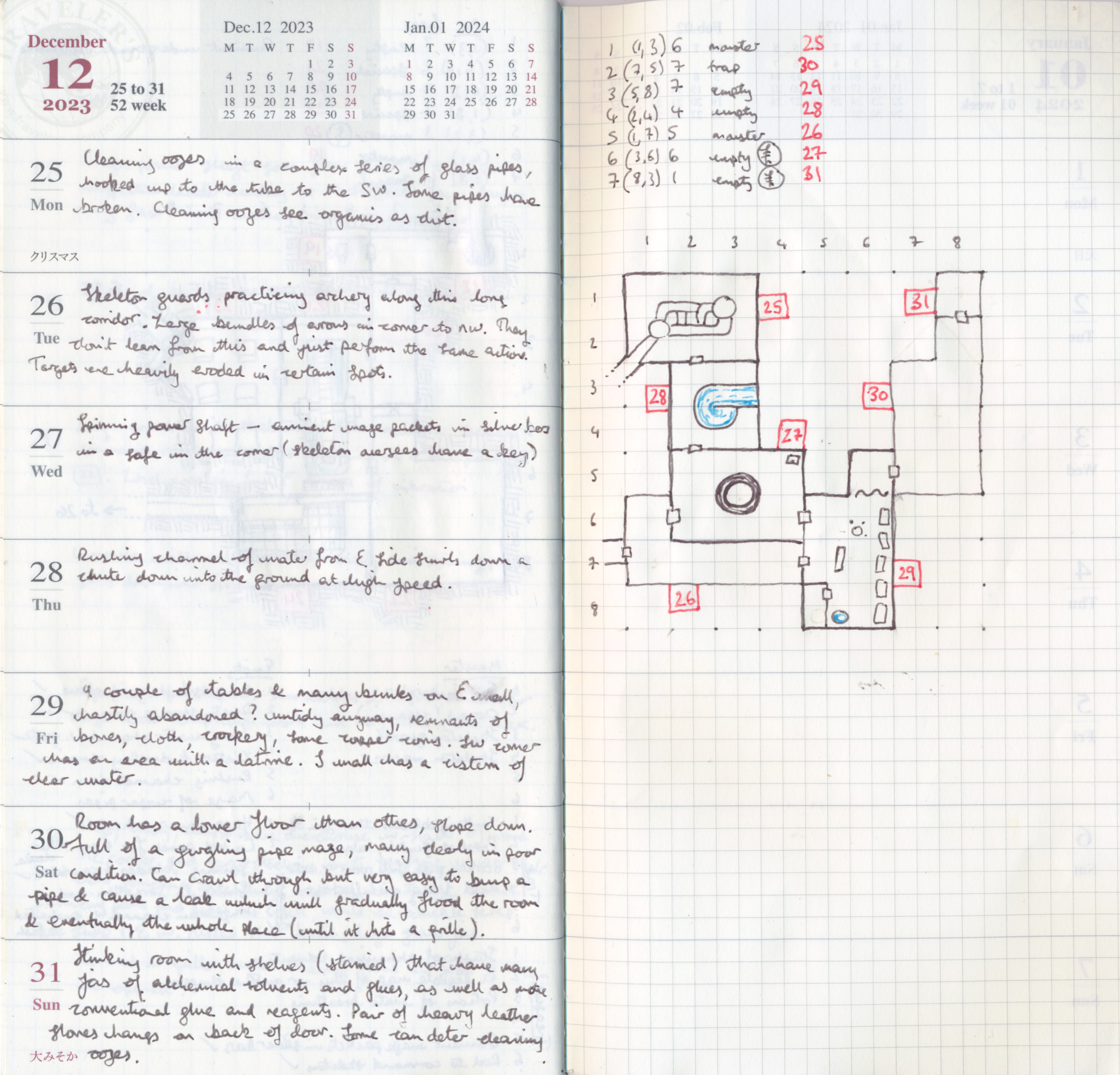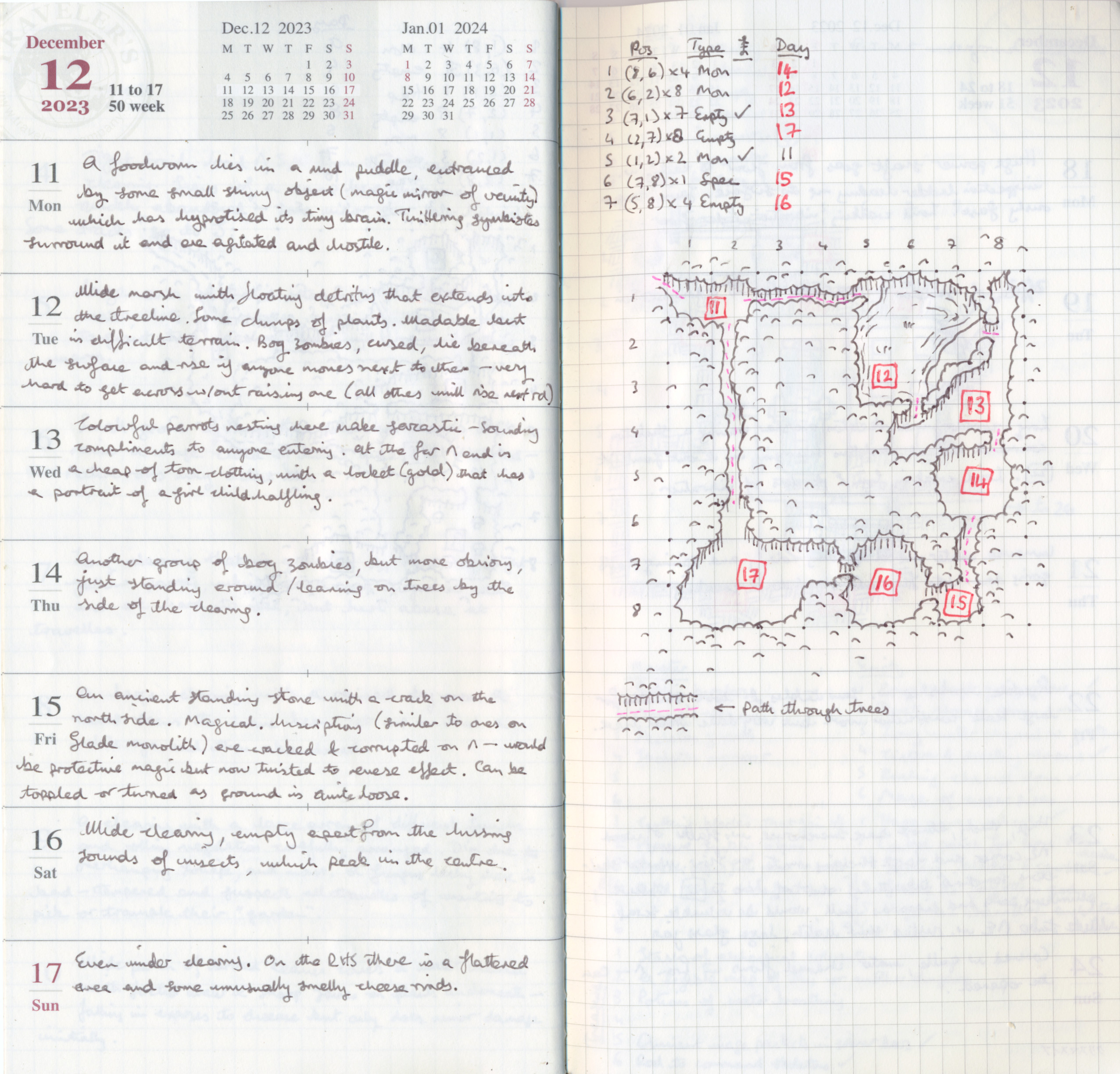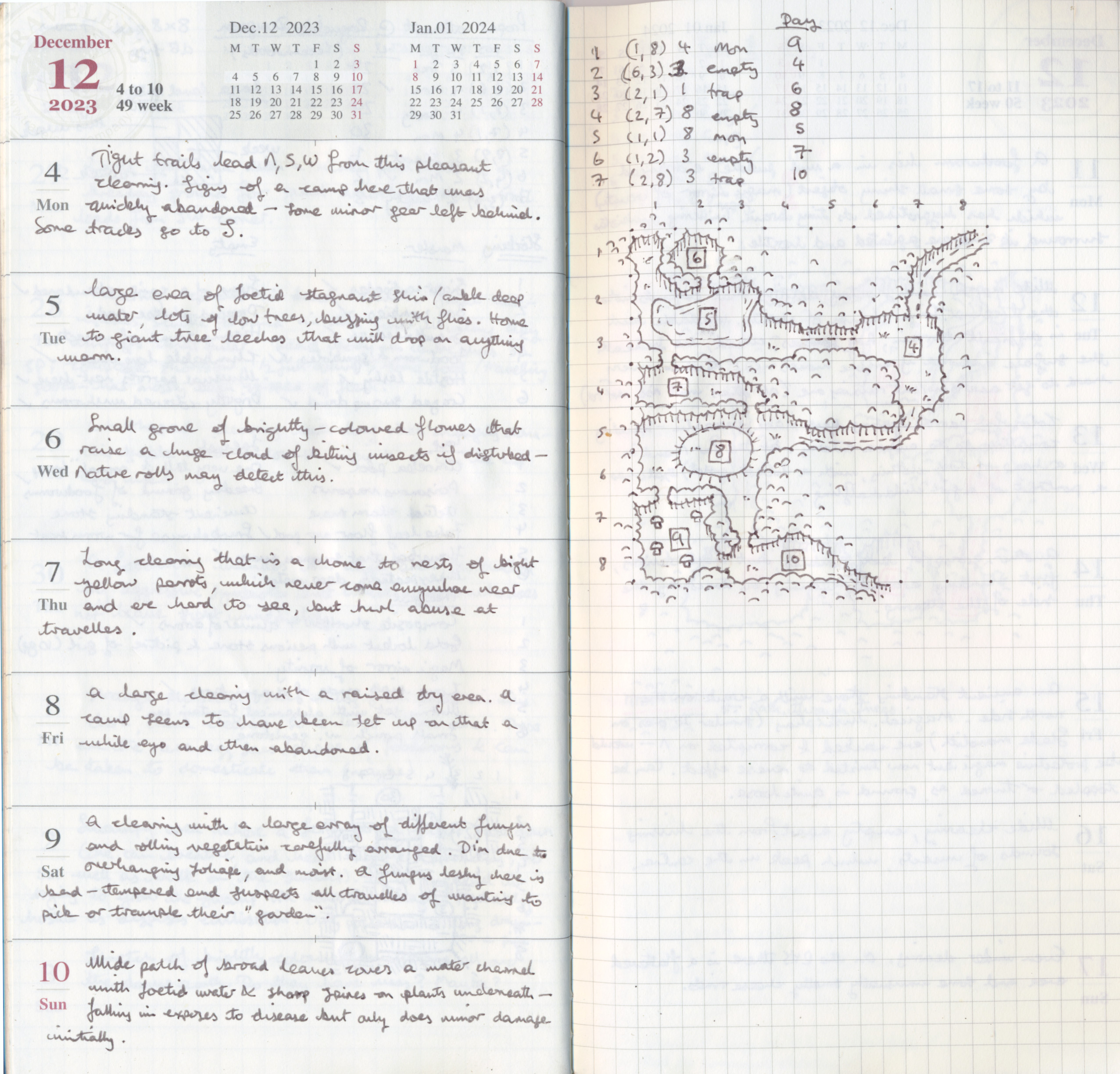 It's 2025 now, not 2023, and I'm considering whether to do #dungeon26 now. I did complete #hex24 though it was a bit of a struggle. I failed to complete what I'd planned for this year, vaguely called #region26, ostensibly because I couldn't decide on a medium to do it on (mini index cards? my colour reMarkable? a big student notebook?) but if I'd been sufficiently motivated I'd have done it regardless.